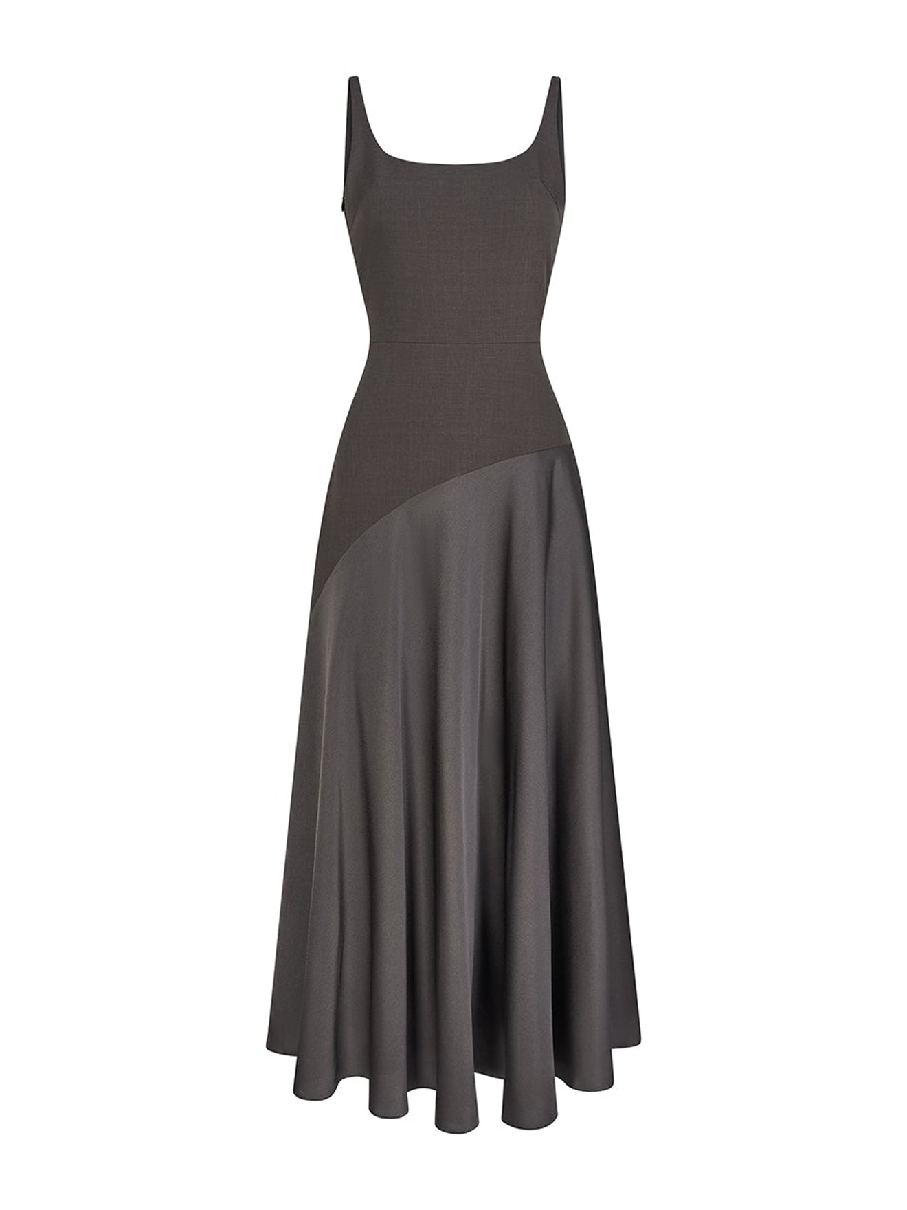 Renowned for minimal design, Tonyy presents the dress in a brown hue. It’s defined by sleek cut-out detailing and an halterneck silhouette, falling into a midi skirt.