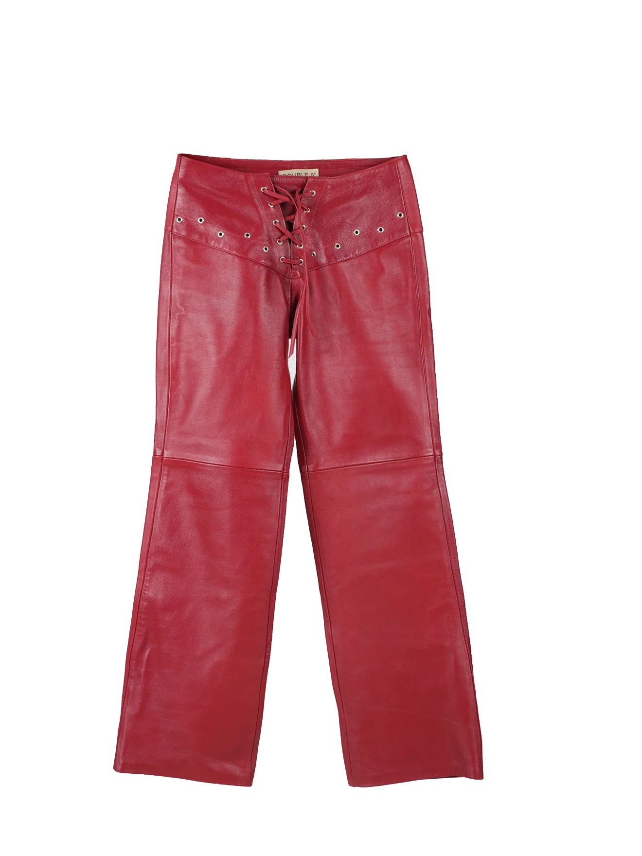 Made from premium leather, these pants command attention with rugged rope and eyelet details at the front, adding a rebellious edge that’s impossible to ignore. Designed for both style and function, they feature a secure inner snap button closure for a clean, streamlined look that keeps you comfortable and confident all day long.