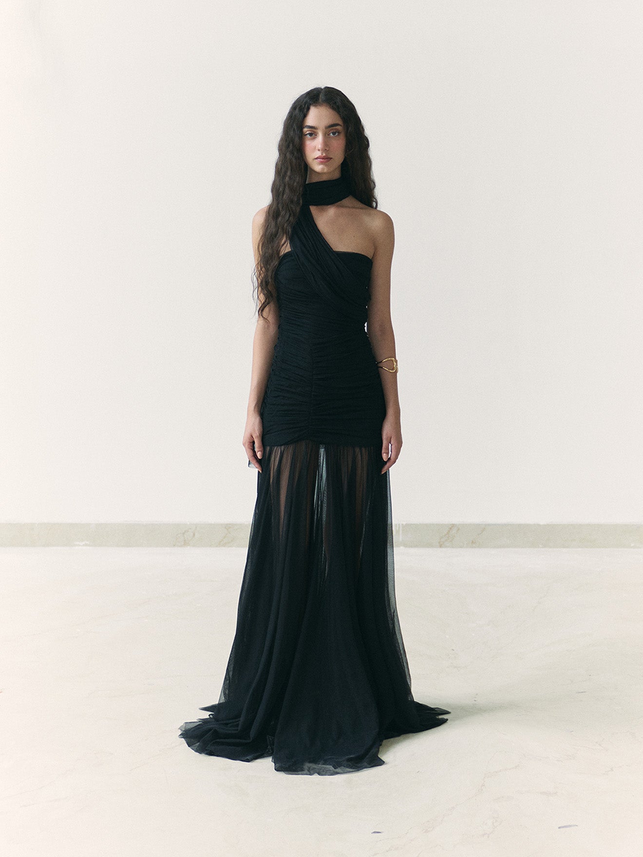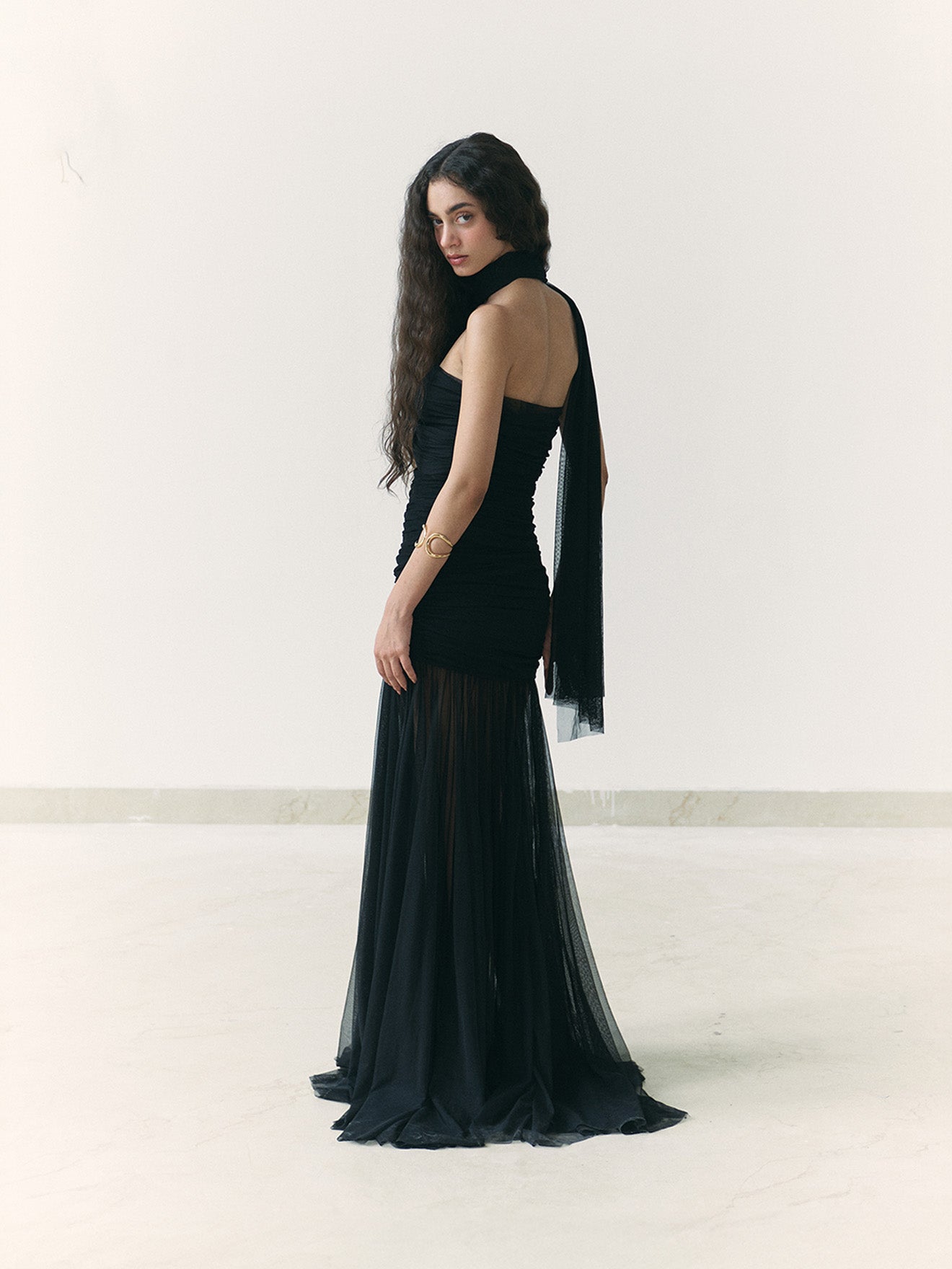 Black Draped Dupatta Dress